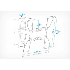 Диагональ экрана 19″ – 37″ Нагрузка 30 кг Крепежные отверстия 75х75, 100х100, 200х100, 200х200 мм Угол наклона - 6°+15⁰ Угол поворота 135⁰ ..