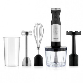 Тип погружной блендер Мощность 800 Вт Погружная часть и лезвия из нержавеющей стали есть Корпус из пластика декорирован нержавеющей сталью Плавная регули..