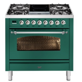 Тип комбинированный варочный центр Цвет корпуса зеленый изумруд Цвет фурнитуры хром Количество духовок 1 духовка Тип варочной поверхности газова..