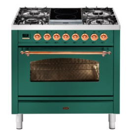 Тип комбинированный варочный центр Цвет корпуса зеленый изумруд Цвет фурнитуры медь Количество духовок 1 духовка Тип варочной поверхности газова..
