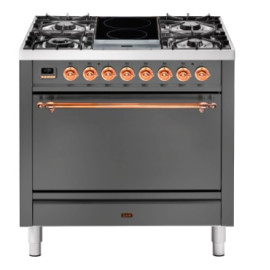 Тип комбинированный варочный центр Цвет корпуса матовый графит Цвет фурнитуры медь Количество духовок 1 духовка Тип варочной поверхности газовая..