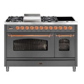 Тип комбинированный варочный центр Цвет корпуса матовый графит Цвет фурнитуры медь Количество духовок 2 духовки Тип варочной поверхности комбини..
