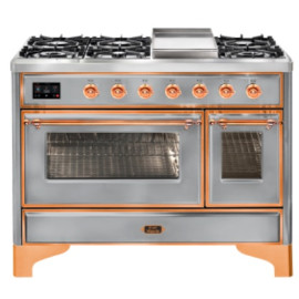 Тип комбинированный варочный центр Цвет корпуса нержавеющая сталь Цвет фурнитуры медь Количество духовок 2 духовки Тип варочной поверхности газо..