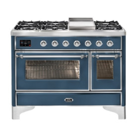 Тип комбинированный варочный центр Цвет корпуса синий Цвет фурнитуры хром Количество духовок 2 духовки Тип варочной поверхности газовая ..