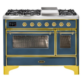 Тип комбинированный варочный центр Цвет корпуса синий Цвет фурнитуры латунь Количество духовок 2 духовки Тип варочной поверхности газовая ..
