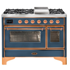 Тип комбинированный варочный центр Цвет корпуса синий Цвет фурнитуры медь Количество духовок 2 духовки Тип варочной поверхности газовая ..