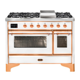 Тип комбинированный варочный центр Цвет корпуса белый Цвет фурнитуры медь Количество духовок 2 духовки Тип варочной поверхности газовая ..