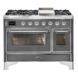Тип комбинированный варочный центр Цвет корпуса матовый графит Цвет фурнитуры хром Количество духовок 2 духовки Тип варочной поверхности газовая..