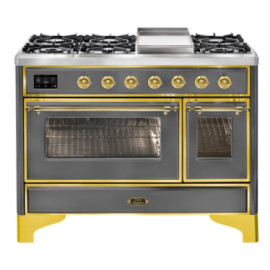 Тип комбинированный варочный центр Цвет корпуса матовый графит Цвет фурнитуры латунь Количество духовок 2 духовки Тип варочной поверхности газов..