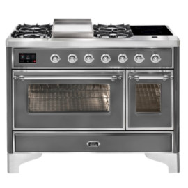 Тип комбинированный варочный центр Цвет корпуса матовый графит Цвет фурнитуры хром Количество духовок 2 духовки Тип варочной поверхности газовая..