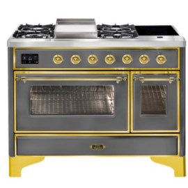 Тип комбинированный варочный центр Цвет корпуса матовый графит Цвет фурнитуры латунь Количество духовок 2 духовки Тип варочной поверхности газов..