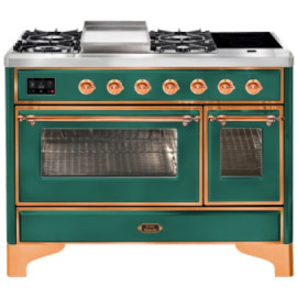 Тип комбинированный варочный центр Цвет корпуса зеленый изумруд Цвет фурнитуры медь Количество духовок 2 духовки Тип варочной поверхности газова..