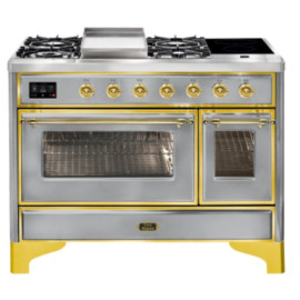 Тип комбинированный варочный центр Цвет корпуса нержавеющая сталь Цвет фурнитуры латунь Количество духовок 2 духовки Тип варочной поверхности га..