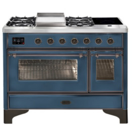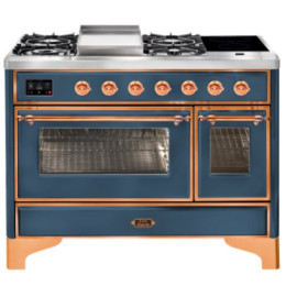 Тип комбинированный варочный центр Цвет корпуса синий Цвет фурнитуры медь Количество духовок 2 духовки Тип варочной поверхности газовая, индукци..