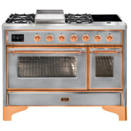 Тип комбинированный варочный центр Цвет корпуса нержавеющая сталь Цвет фурнитуры медь Количество духовок 2 духовки Тип варочной поверхности газо..