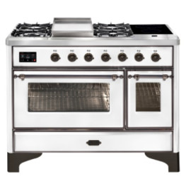 Тип комбинированный варочный центр Цвет корпуса белый Цвет фурнитуры бронза Количество духовок 2 духовки Тип варочной поверхности газовая, индук..