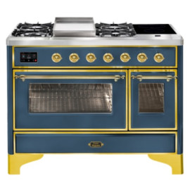 Тип комбинированный варочный центр Цвет корпуса синий Цвет фурнитуры латунь Количество духовок 2 духовки Тип варочной поверхности газовая, индук..