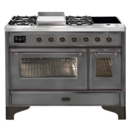 Тип комбинированный варочный центр Цвет корпуса матовый графит Цвет фурнитуры бронза Количество духовок 2 духовки Тип варочной поверхности газов..