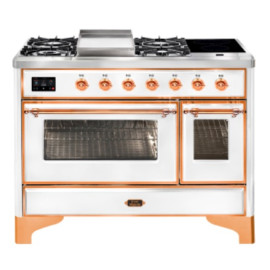 Тип комбинированный варочный центр Цвет корпуса белый Цвет фурнитуры медь Количество духовок 2 духовки Тип варочной поверхности газовая, индукци..