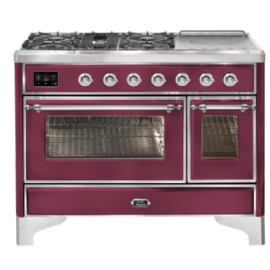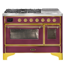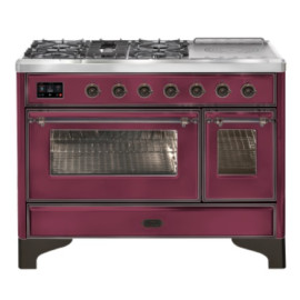 Тип комбинированный варочный центр Цвет корпуса красный бургундский Цвет фурнитуры латунь Количество духовок 2 духовки Тип варочной поверхности ..