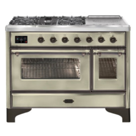 Тип комбинированный варочный центр Цвет корпуса античный белый Цвет фурнитуры бронха Количество духовок 2 духовки Тип варочной поверхности газов..