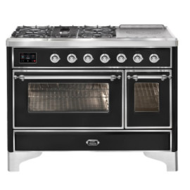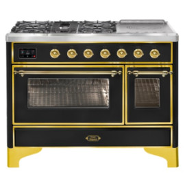 Тип комбинированный варочный центр Цвет корпуса глянцевый черный Цвет фурнитуры латунь Количество духовок 2 духовки Тип варочной поверхности газ..