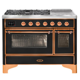 Тип комбинированный варочный центр Цвет корпуса глянцевый черный Цвет фурнитуры медь Количество духовок 2 духовки Тип варочной поверхности газов..