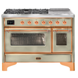 Тип комбинированный варочный центр Цвет корпуса античный белый Цвет фурнитуры медь Количество духовок 2 духовки Тип варочной поверхности газовая..