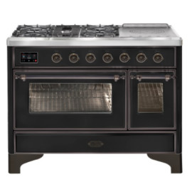 Тип комбинированный варочный центр Цвет корпуса глянцевый черный Цвет фурнитуры бронза Количество духовок 2 духовки Тип варочной поверхности газ..