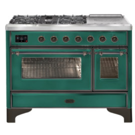 Тип комбинированный варочный центр Цвет корпуса зеленый изумруд Цвет фурнитуры бронза Количество духовок 2 духовки Тип варочной поверхности газо..