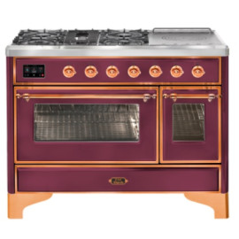 Тип комбинированный варочный центр Цвет корпуса красный бургундский Цвет фурнитуры медь Количество духовок 2 духовки Тип варочной поверхности га..