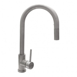 Тип смеситель Форма смесителя дугообразная Цвет нержавеющая сталь Материал нержавеющая сталь Тип излива поворотный выдвижной, высокий ..