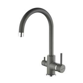 Тип смеситель Цвет вороненая сталь Материал латунь Вес 2.5 кг Габариты (ШхВхД) 145х370х240 мм Поверхность..