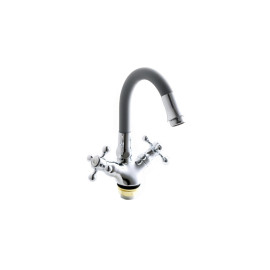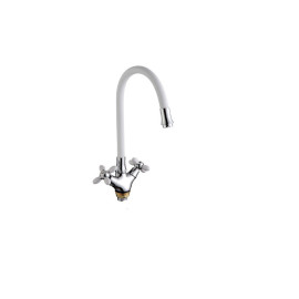 Тип смеситель с гибким изливом Форма дугообразная Цвет белый, хром Материал цинковый сплав Высота смесителя 358 мм ..