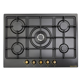 Тип поверхности газовая Ширина 70 см Цвет чёрный Решетки чугунные Управление фронтальное Переключатели ..